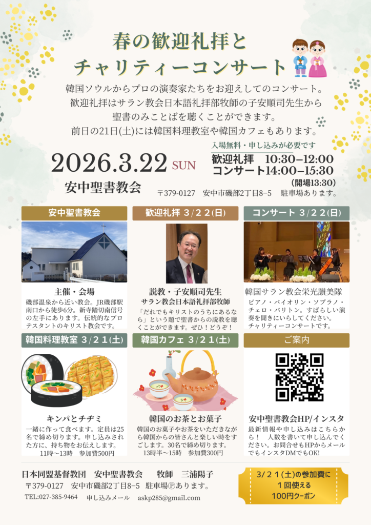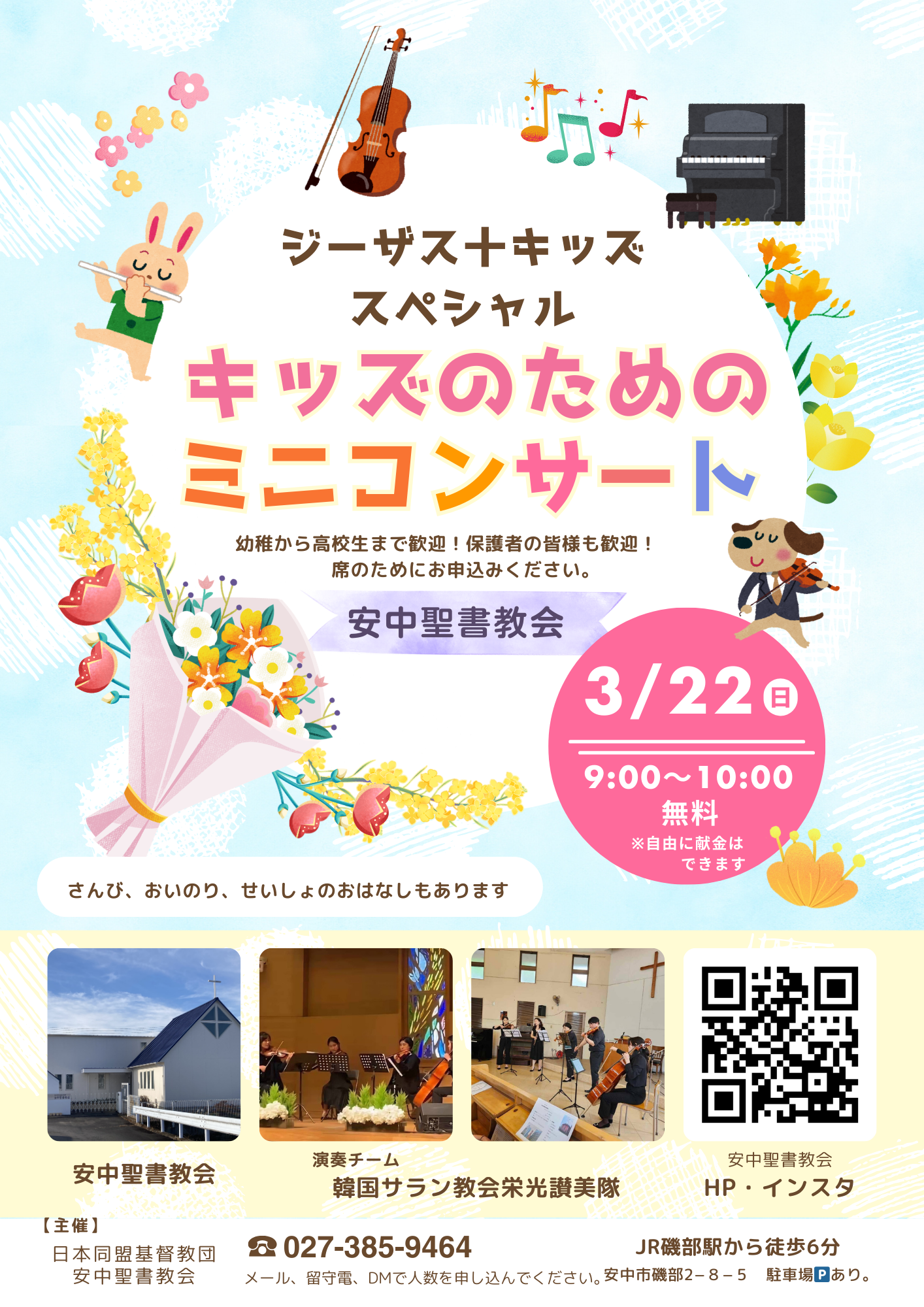 3月にはジーザス十キッズスペシャルとして、ミニコンサートも計画しています。ぜひ、お申込みください。
